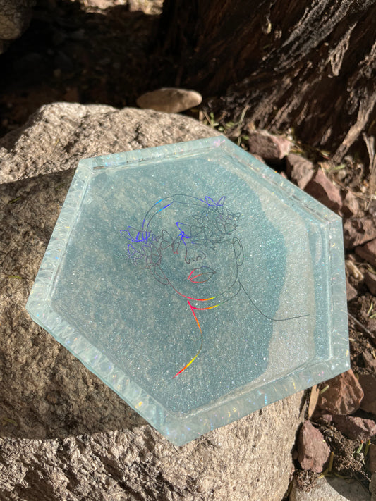 Womxn with Aura Quartz Coaster/ Trinket Tray