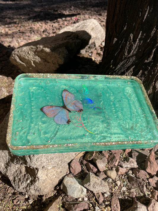 Aqua Butterfly Womxn Large Tray