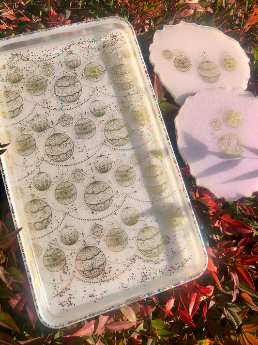 Pearlescent White/ Gold/Glitter Foil Coaster/Tray Set