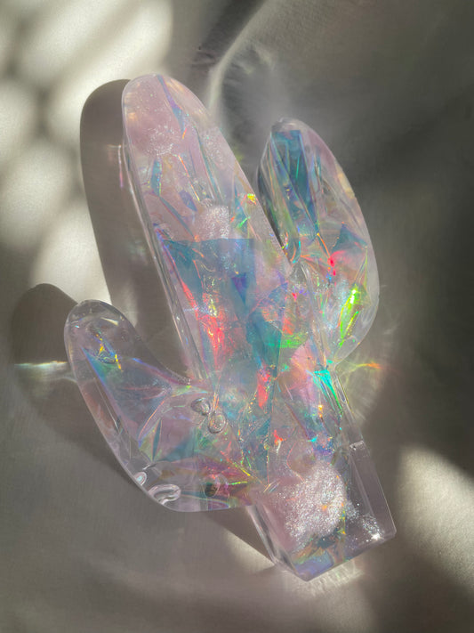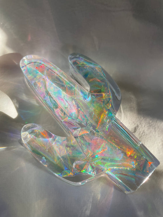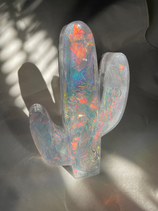 B-grade Desert Vibes Iridescent Saguaro Cactus Paper Weight/ Standing Decor
